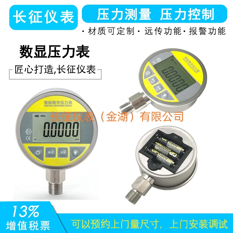 數字壓力表是采用單片機控制的在線測量儀表。它采用電池長期供電方式、無需外接電源,安裝使用方便,該系列數字壓力表可用壓力表、絕壓、差壓的檢測,其形式品種多樣,分為普通型和防爆型,能滿足各種測量需要。